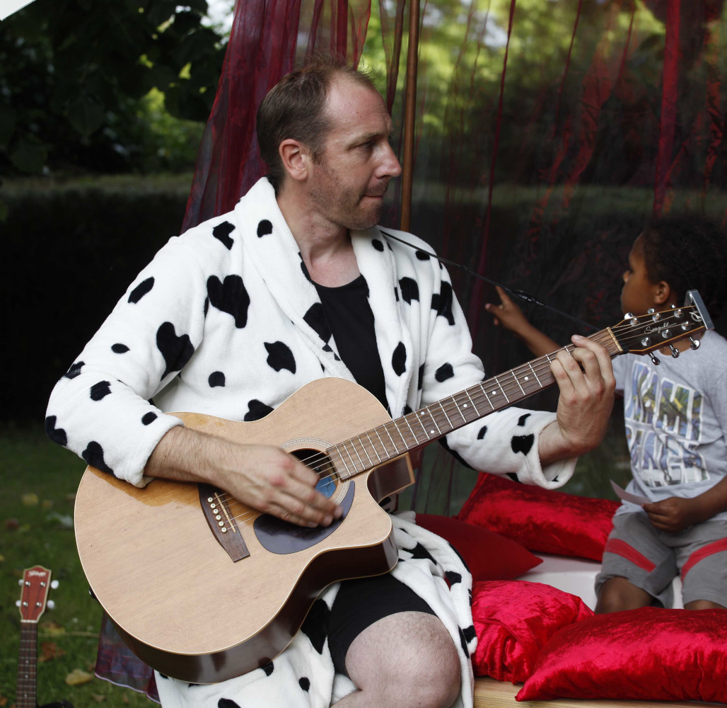 Le public choisit une carte au hasard, le titre de la chanson est donné, et en baignoire Simone!